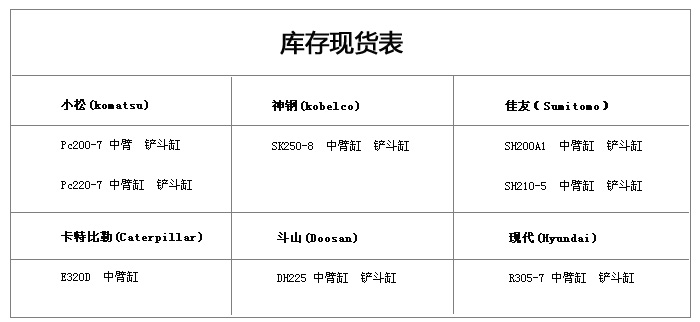 小松PC系列挖掘機(jī)液壓缸、神鋼SK系列挖掘機(jī)液壓缸、卡特E系列挖掘機(jī)液壓缸、住友SH系列挖掘機(jī)液壓缸、現(xiàn)代R系列挖掘機(jī)液壓缸、大宇(斗山)DH系列挖掘機(jī)液壓缸……